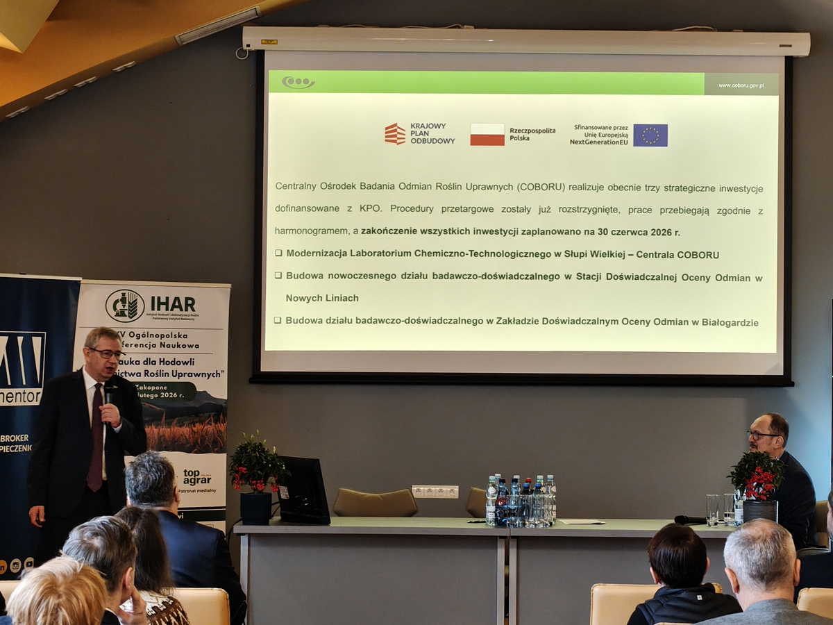 W dniach 16 - 19 lutego 2026 roku w Zakopanem odbyła się XV Ogólnopolska Konferencja Naukowa „Nauka dla Hodowli i Nasiennictwa Roślin Uprawnych” organizowana przez Instytut Hodowli i Aklimatyzacji Roślin – Państwowy Instytut Badawczy. Konferencja była okazją do promocji oraz prezentacji najnowszych osiągnięć naukowych pracowników Instytutu oraz pozostałych uczestników. Tematyka konferencji skupiała się na problematyce wsparcia naukowego hodowli roślin uprawnych w procesie tworzenia nowoczesnych odmian oraz ich nasiennictwa. Była także doskonałą okazją do wymiany doświadczeń i poszerzania współpracy między partnerami naukowymi oraz branżowymi, co zapewnia szybki i wydajny proces transferu wiedzy do praktyki, a w efekcie sprawia, że hodowla roślin staje się bardziej innowacyjna i konkurencyjna zarówno na rynku krajowym, jak i zagranicznym. Konferencja była także okazją do rozpoczęcia obchodów 75-lecia działalności IHAR-PIB.